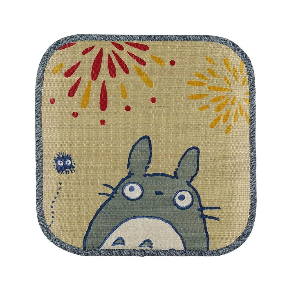 This Ghibli My Neighbor Totoro Hanabi Design Igusa Seat Cushion adds whimsy to chairs just in time for warm weather. This seat cushion is crafted with Japanese igusa, aka rush grass, known to help regulate temperature, making it perfect for hotter months. It features an adorable image of Totoro enjoying fireworks, so you'll want to use it daily. This seat cushion offers excellent support for desk chairs and dining chairs.