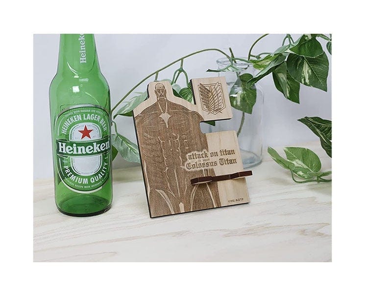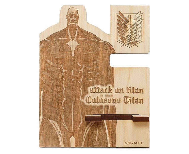 Grab this smartphone stand made out of wood featuring the Colossus Titan! Perfect for your office.