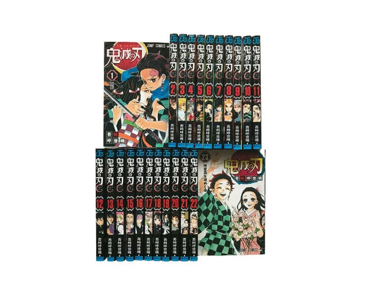 Collect all 23 volumes of the popular Demon Slayer Manga in Japanese. See Tanjiro X Nezuko in action on the cover art! Get the original copies of Kimitsu no yaiba to read or keep in a collection.