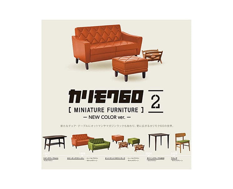Make a cozy miniature living space with Karimoku 60 Series 2 Miniature Furniture Gachapon! Shades of mocha brown, burnt orange, and moss green create an elegant atmosphere.
