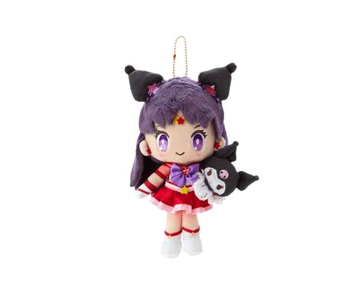 Sailor Mars holds a Kuromi plush in this delightful collaboration mascot between Sailor Moon and Sanrio.