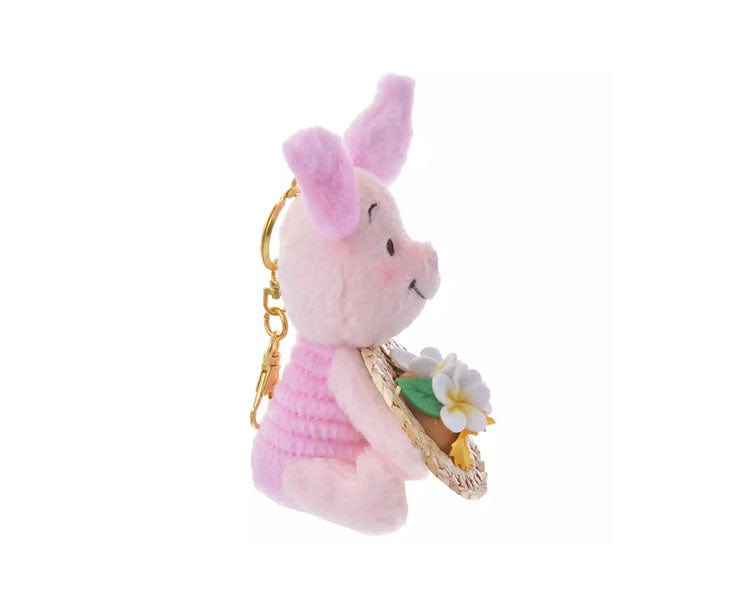What's better than warm weather? This Winnie the Pooh Keychain Plush featuring Piglet! Holding a straw hat topped with summer flowers, this Piglet keychain embodies summertime. Add this limited edition keychain to your purse or keys for a fun decoration.